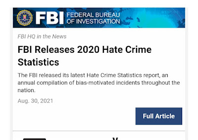 FBI Continues Hate Crime Reporting Campaign, Implying America Is racist – Its 2020 Hate Crime Statistics say otherwise