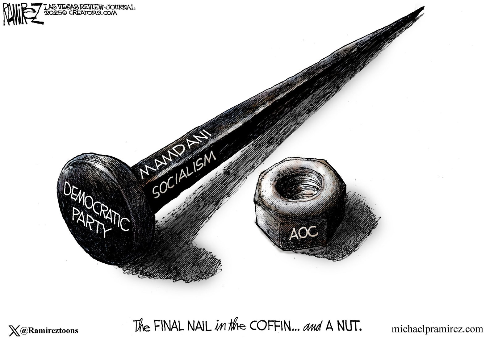Ramirez, who studied premed at the University of California, Irvine, originally considered journalism a hobby. But he was hooked when his first cartoon for the college newspaper, lampooning candidates for student office, had the student assembly demanding an apology. "Editorial cartoons should be smart and substantive, provocative and informative. They should stir passions and deep emotions. Editorial cartoons should be the catalyst for thought, and frankly speaking, if you can make politicians think, that is an accomplishment in itself. If I don't get at least one death threat every few months, then I'm not doing my job," Ramirez says of his penchant for sparking controversy. In addition to the 1994 and 2008 Pulitzer Prizes, Ramirez was the 2008 winner of the prestigious Fischetti Award. He is a three-time Sigma Delta Chi, Society of Professional Journalism Award winner, a Lincoln Fellow and a recipient of the UCI Medal. He is a senior editor and the editorial cartoonist for Investor's Business Daily. He is formerly the editorial cartoonist for the Los Angeles Times, The Memphis Commercial Appeal and a contributing cartoonist for USA Today. His work is syndicated by Creators Syndicate. Don't leave without checking out his editorial cartoons and Ramirez Caricatures.
