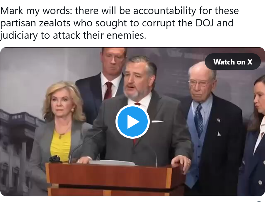 “Judge Boasberg put his robe down, stood up and said, ‘Sign me up to be part of the partisan vendetta against 20% of Republicans in the Senate,’” Cruz said. “Mark my words: there will be accountability.”
