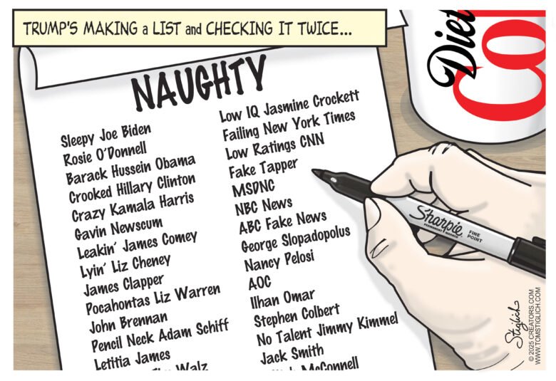 Home/Trending Topics/Editorial Cartoons/Trump’s Naughty List Editorial Cartoons Trump’s Naughty List Tom StiglichDecember 11, 20250 95 Facebook X Pinterest Reddit WhatsApp Share via Email Print Tom StiglichDecember 11, 20250 95 Facebook X Pinterest Reddit WhatsApp Share via Email Print