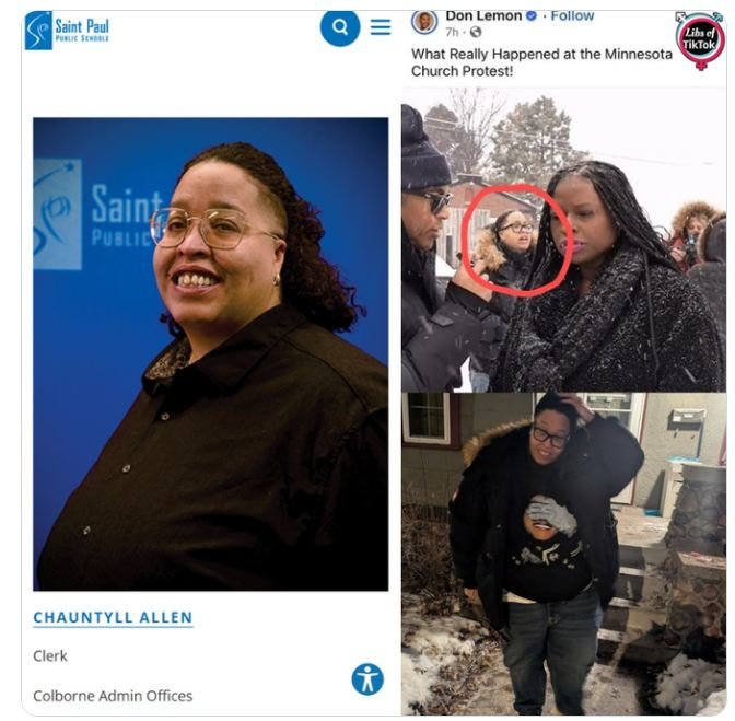 Chauntyll Allen (CA) showed no remorse for her actions on Sunday and told investigators she would do it all again. These comments prove she has no concern for others’ rights and is blatantly disregarding them. CA, who is a leader of Black Lives Matter Twin Cities, says the protest and storming of the church was necessary to make it clear that having a pastor who is also an ICE official is unacceptable, in her BLM mind. Obviously she is ambivalent to having a BLM official, a sham group that was proven in court to be nothing but a Ponzi scheme for the enrichment of its leaders, and also to be a school board member. I think the people of Saint Paul may have other views.
