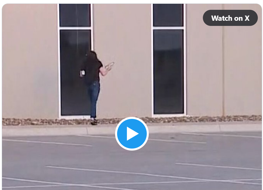 A video shows a woman wearing a black top and jeans standing just outside the warehouse as she appears to splash gasoline onto part of the building’s exterior. Moments later, she lights the fuel, and flames quickly ignite along the outside wall.