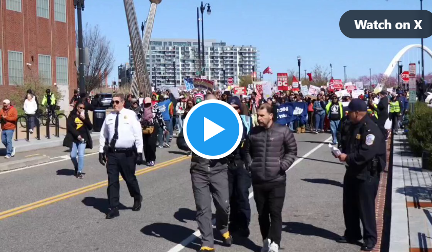 Another video by the DCNF reporter shows a protester leading chants for the capital’s Metropolitan Police Department (MPD) to cut its budget, as uniformed officers observed the marches from behind barricades.