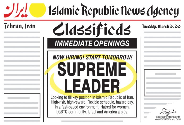 Home/Trending Topics/Editorial Cartoons/Job Opening Editorial Cartoons Job Opening Tom StiglichMarch 4, 20260 86 Facebook X Pinterest Reddit WhatsApp Share via Email Print Tom StiglichMarch 4, 20260 86 Facebook X Pinterest Reddit WhatsApp Share via Email Print