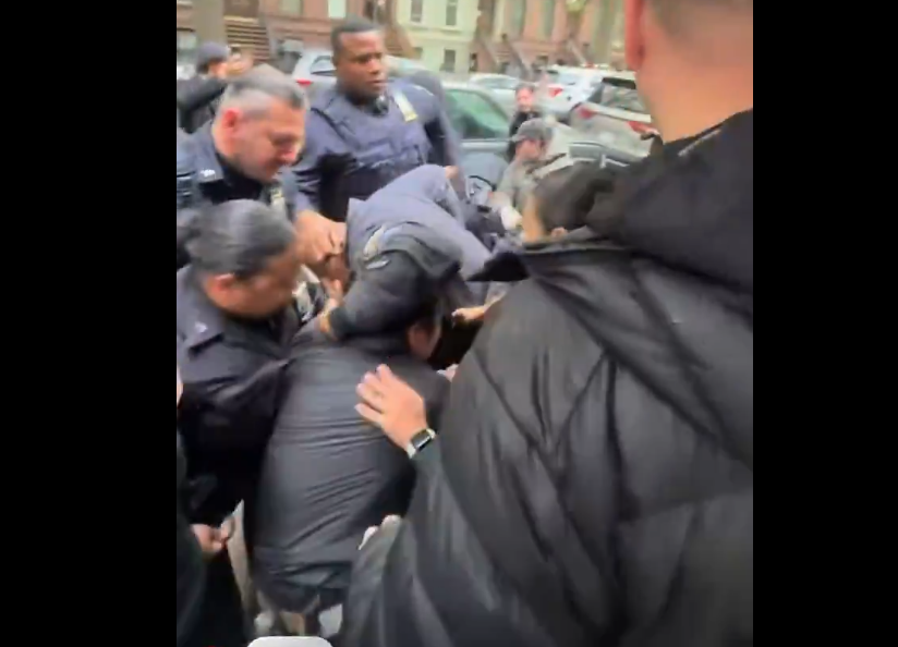 Video posted by Politico reporter Chris Sommerfeldt appears to show the councilman forcing his way past New York Police Department officers in an effort to obstruct the eviction before being thrown down. The move triggered protesters to begin shouting at officers, “Who do you serve? Who do you protect?”