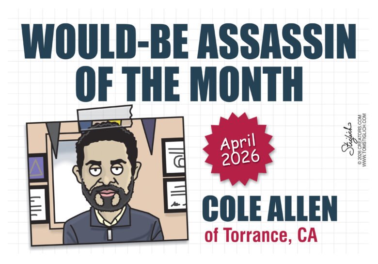 Home/Trending Topics/Editorial Cartoons/Would-Be Assassin of the Month Editorial Cartoons Would-Be Assassin of the Month Tom StiglichApril 26, 20260 0 Facebook X Pinterest Reddit WhatsApp Share via Email Print Tom StiglichApril 26, 20260 0 Facebook X Pinterest Reddit WhatsApp Share via Email Print