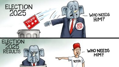 A.F. Branco Cartoon – Trump is calling for ending the filibuster (nuclear option); Democrats are calling foul, although they’ve tried…