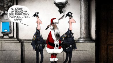 Santa is armed and ready as he heads into crime-filled blue cities this Christmas. See more Branco toons HERE!